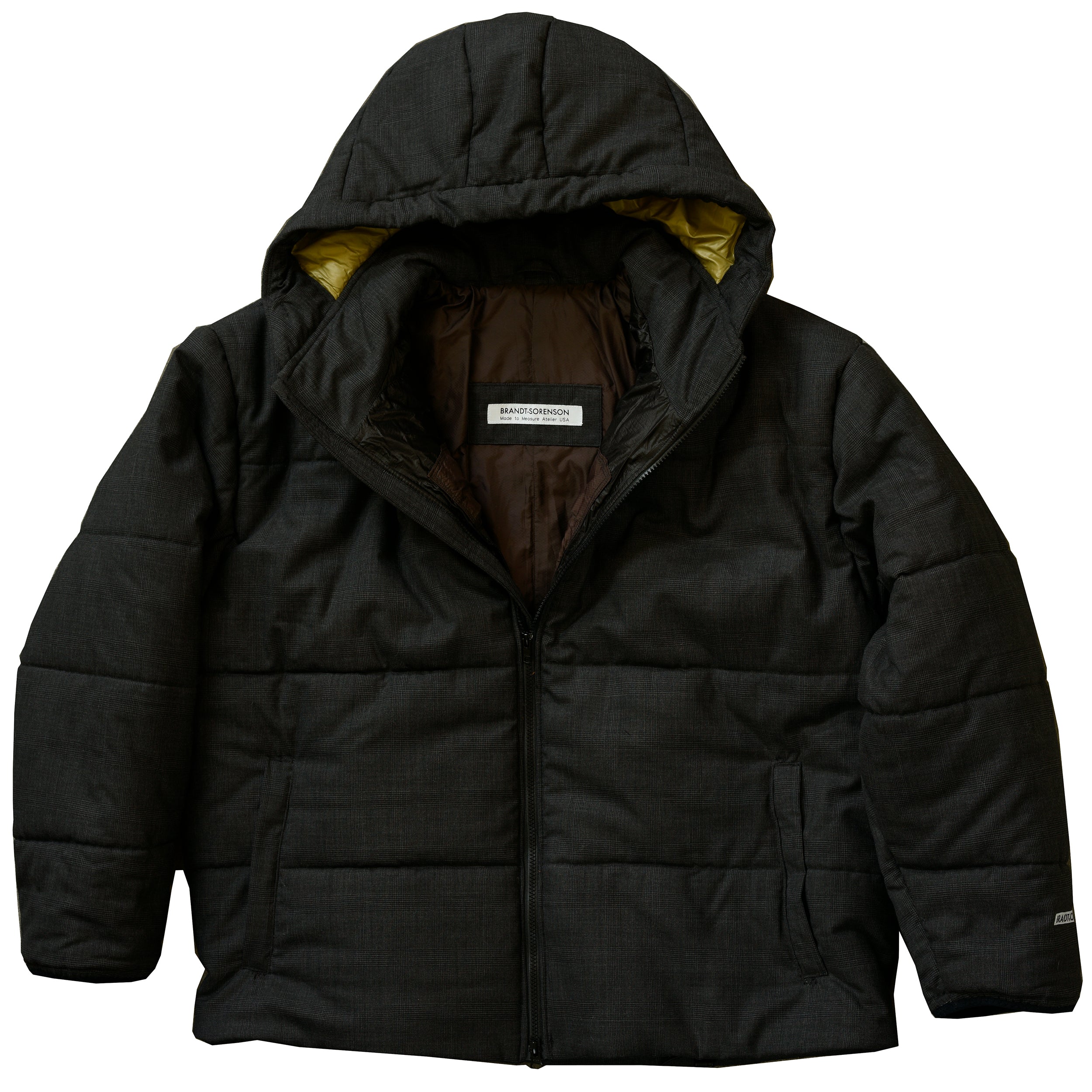 The Wool Ultralight Puff Jacket has a light and airy fit, yet offers excellent insulation when zipped and cinched snug. Highly breathable and ultra-comfortable. Unlike down animal feathers, these synthetic insulations continue to function if soaked with perspiration or rain and offer greater breathability with similar weight. The jacket features three zippered pockets. Built with a beatiful charcoal gray wool glen check textile.