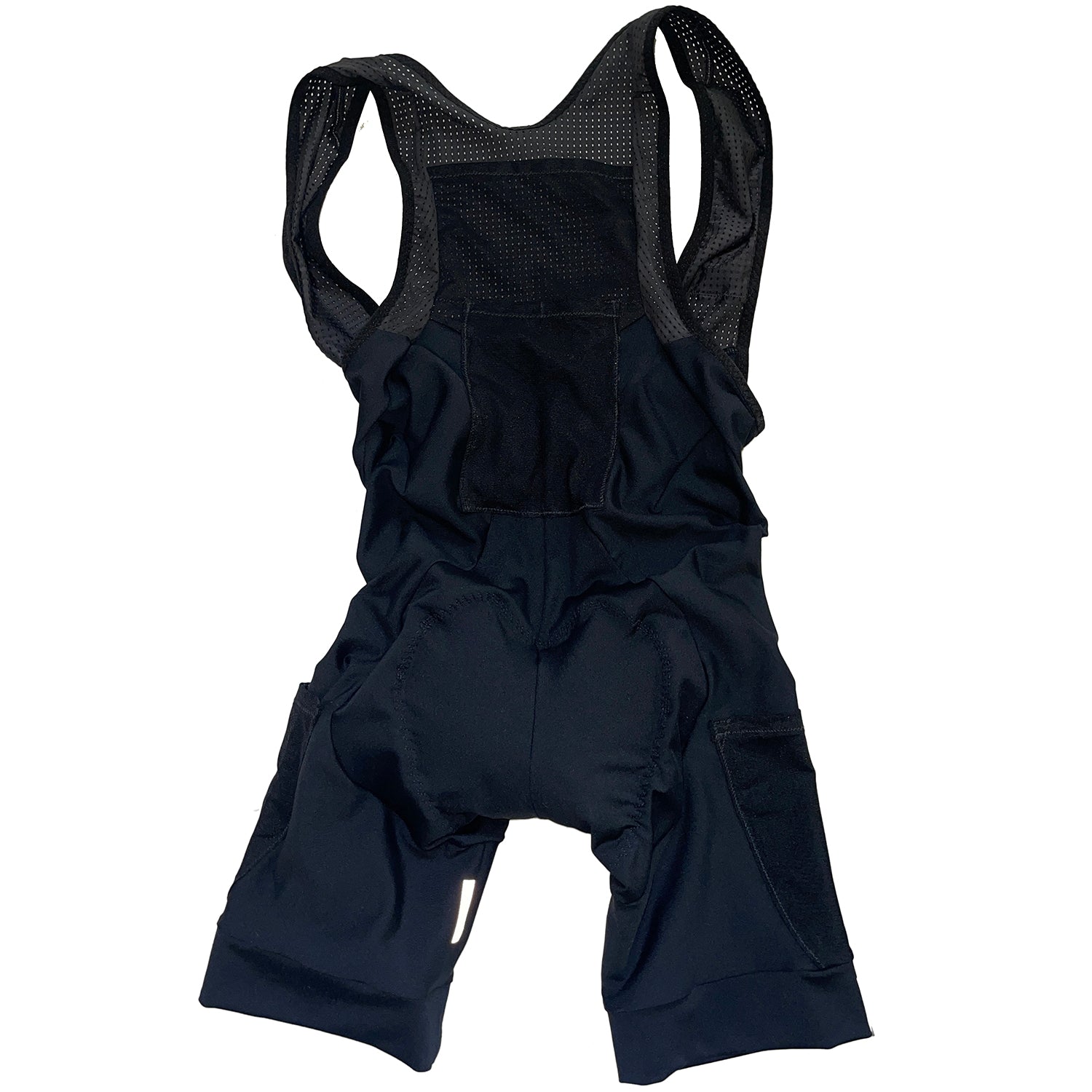 Presenting our 6 patch pocket bib cycling shorts. The 'trail running vest' of cycling shorts. Two chest pockets, one large rear cargo pocket and three easy to access pockets on the side and lower rear. Single needle stitching. Nylon super knit fabric.